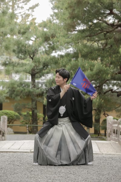 好きなサッカーチームのフラッグを持って!竹林の時の真面目な雰囲気とは一変!お二人の全力のポージングが素敵です。