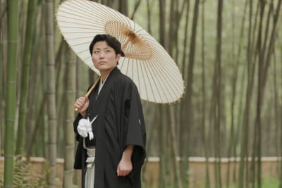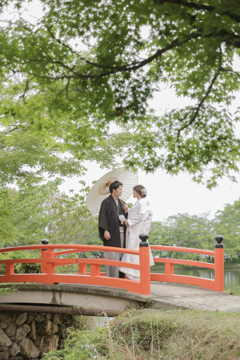 日本の雰囲気漂う橋の上で一枚!和装姿が映えますね。