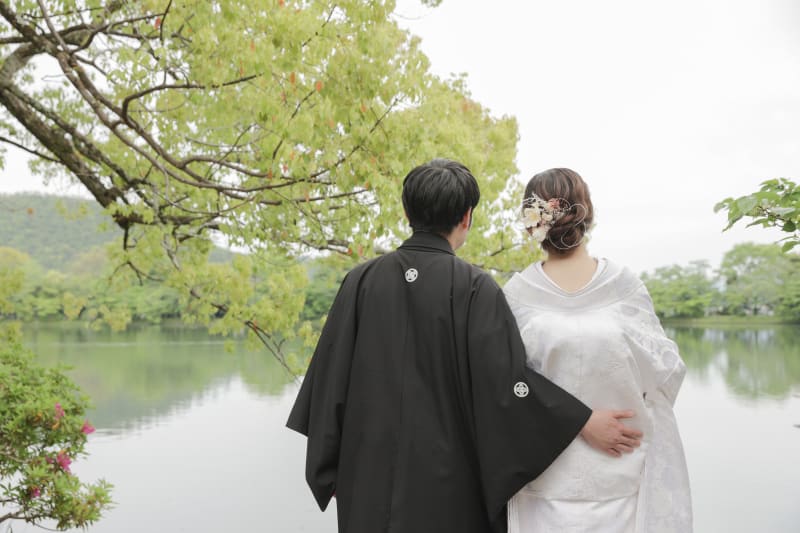 新緑の中、お二人の後ろ姿が素敵です。