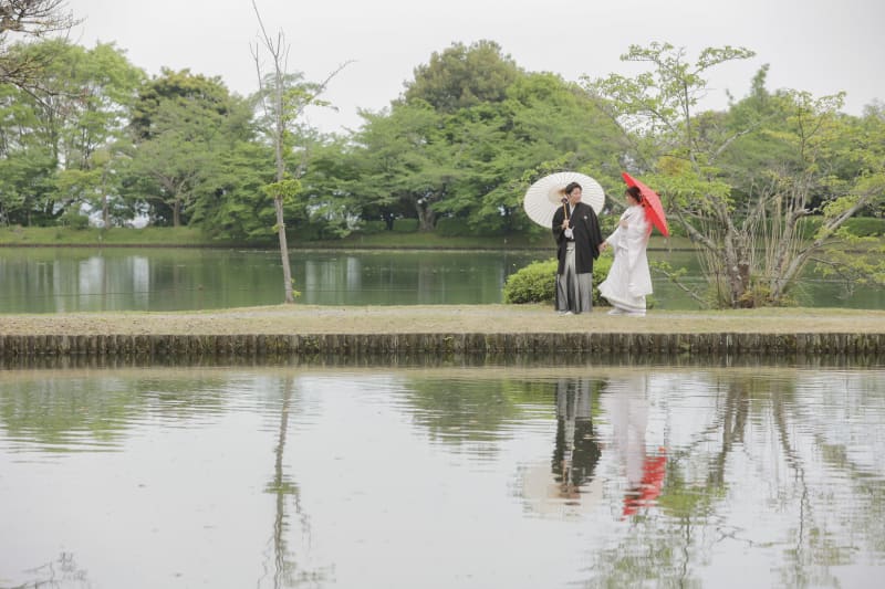周囲を取り囲むのは大きな池、お二人のゆったりした時間が流れます。