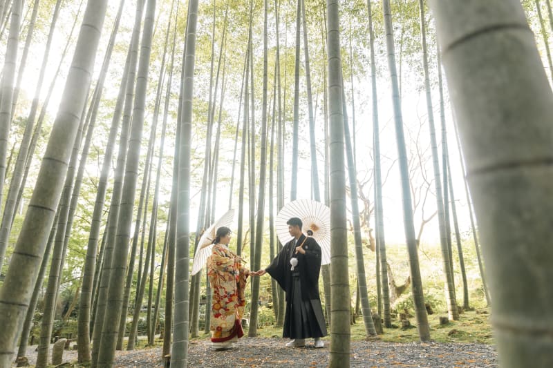 竹林のなかで新郎様のソロカット! 凛とした新郎様の表情が素敵です!