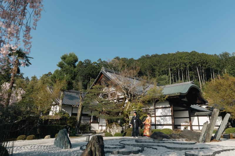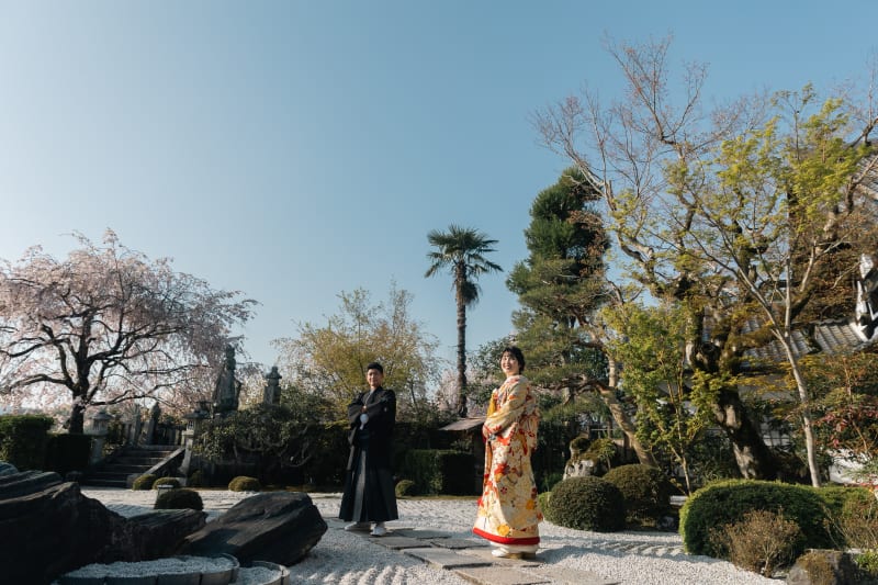 広々とした枯山水庭園では様々な画角・ポージングで思い出を残すことが可能です。