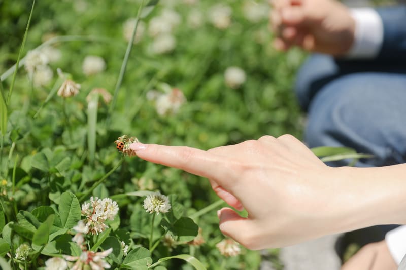 お二人の目の前に幸運の象徴てんとう虫が飛んできました!
