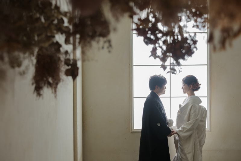 ドライフラワー越しから撮影。笑顔のおふたりとはまた違う雰囲気ですね。
