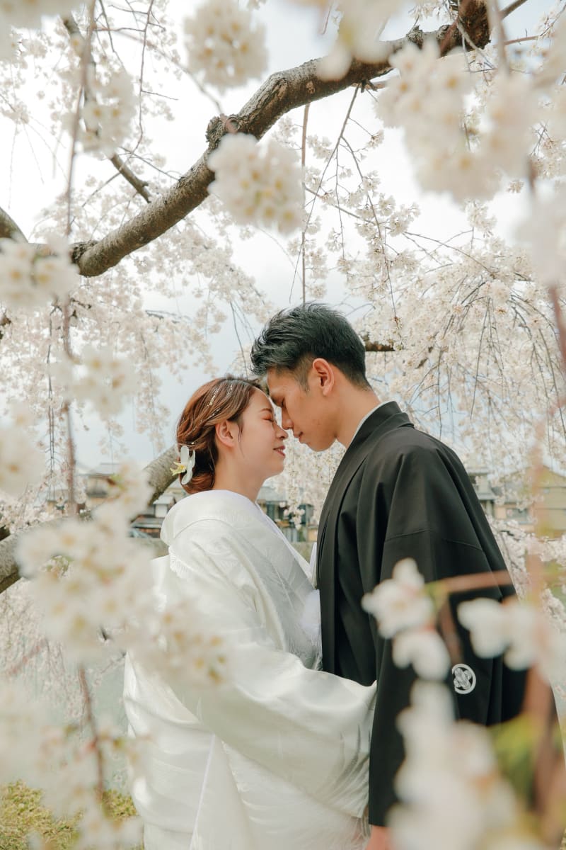 桜の薄ピンクと白無垢の白が柔らかな春の柔らかな雰囲気とよく合います♡