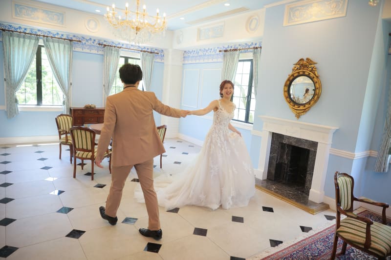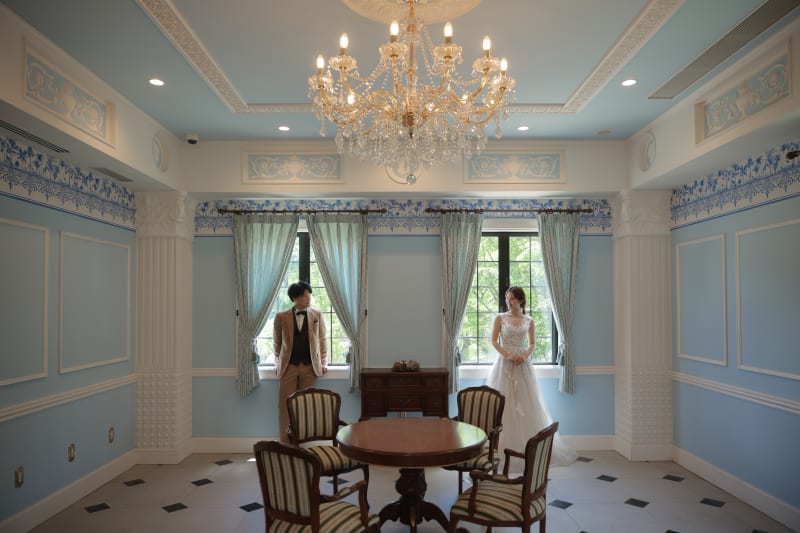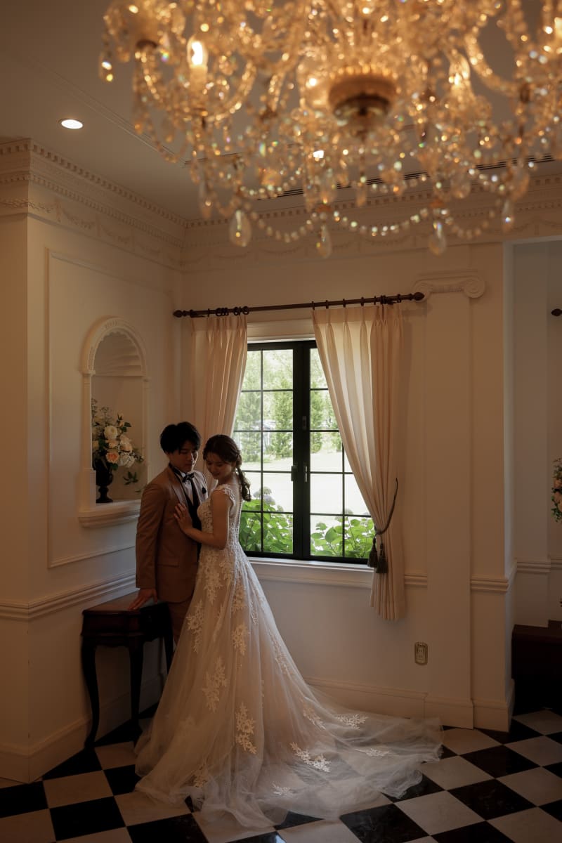 シャンデリアからの優しい光がお二人を優しく包み込みます。