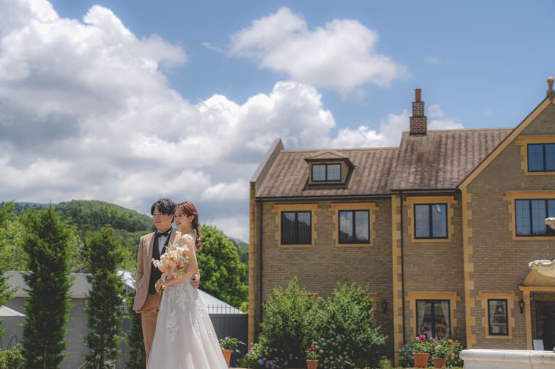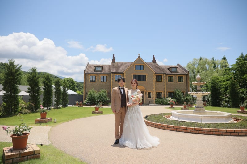 大自然の中に建築されている洋館の前で撮る写真はまるで海外の様ですね。