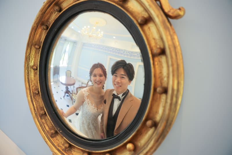 お部屋の中にあった鏡越しにお二人をパシャリ!