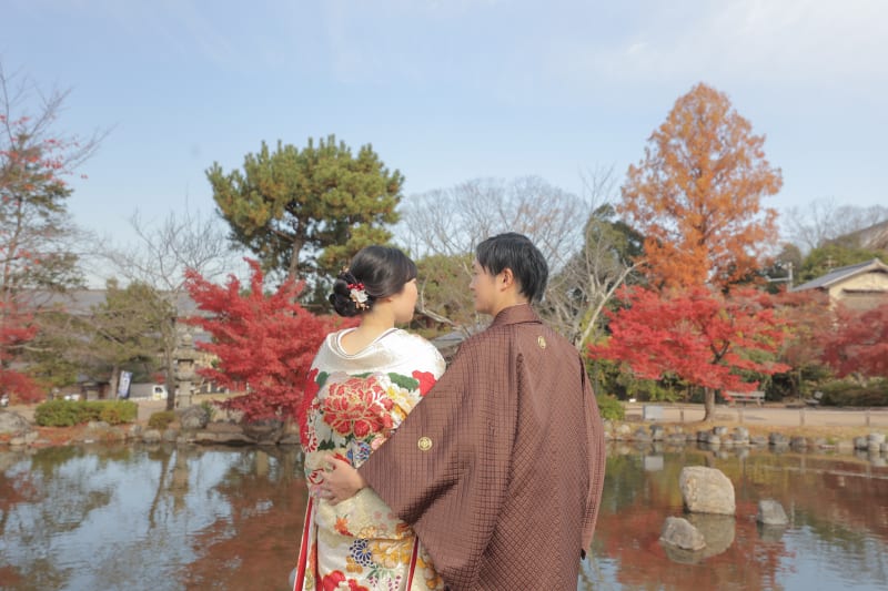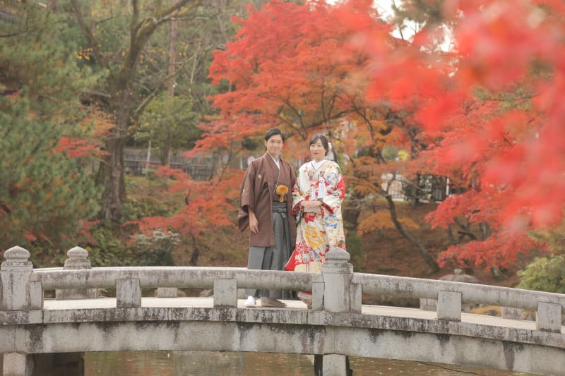風情ある京都で季節感のあるウエディングフォトを撮りたいという新郎新婦様には、京都✖️和装✖️紅葉の組み合わせはとてもおすすめな組み合わせです!