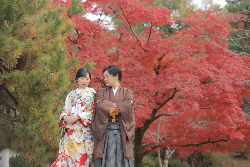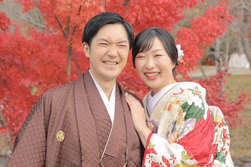 背景にある真っ赤な紅葉がお二人を包み込んでくれています。