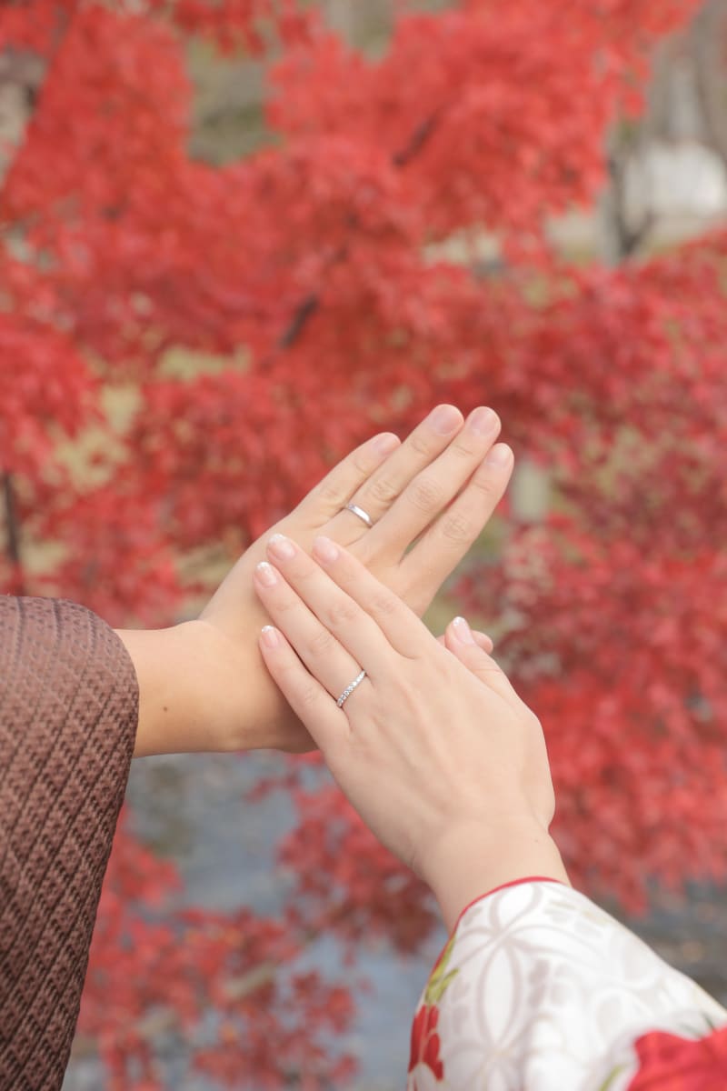 お手元のお写真。お二人の左薬指の指輪も綺麗なお写真として残していただけます。