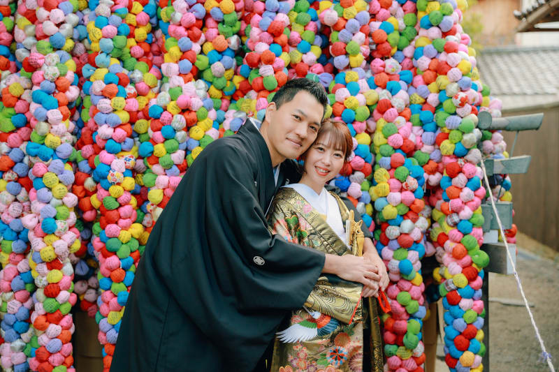 観光客にも人気スポットでカラフルなくくり猿がお二人を歓迎してくれます。