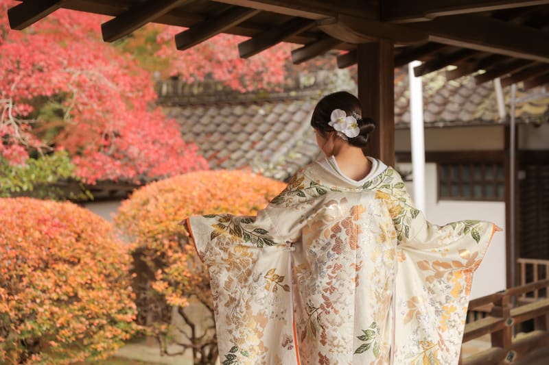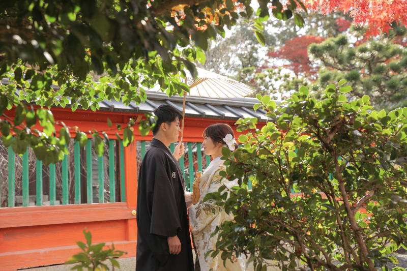 境内周辺で150本もの紅葉が一生モノの結婚写真に華を添えるてくれます。
