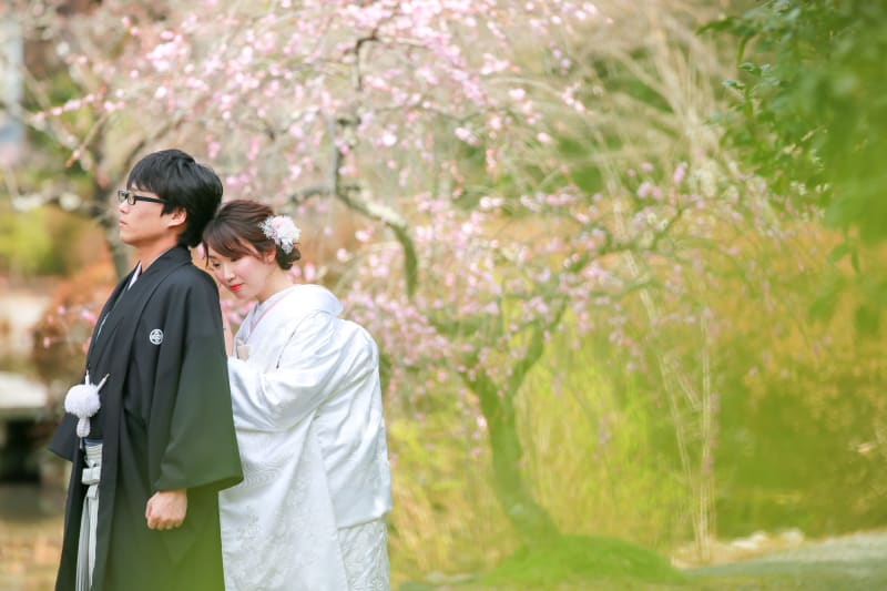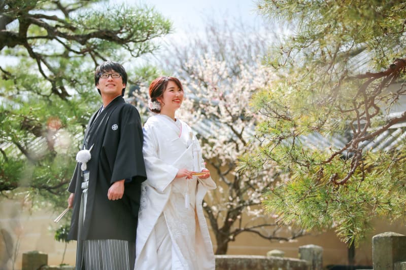 上向きの枝ぶりが縁起が良いと言われる梅は、フォトウェディングにぴったり! 『一足先に春らしい結婚写真が撮影したい!』そんなご新郎様ご新婦様には、胸をはってご提案できるプランになります。