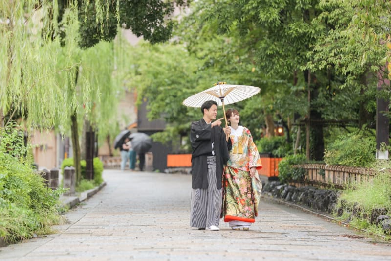 当日は雨は多少降っていたものの、無事祇園でのロケーション撮影を楽しんでいただけました!