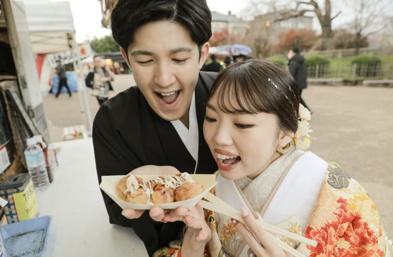 それにしても、素敵な衣装で秋の陽気の中食べるたこやき、おいしそうですね〜!!