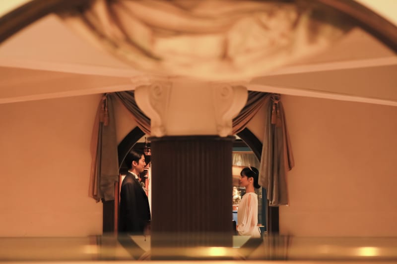 まるで、舞台装置の中での撮影。かっこよくオシャレなウェディングフォトにお二人も気に入っていただけました。