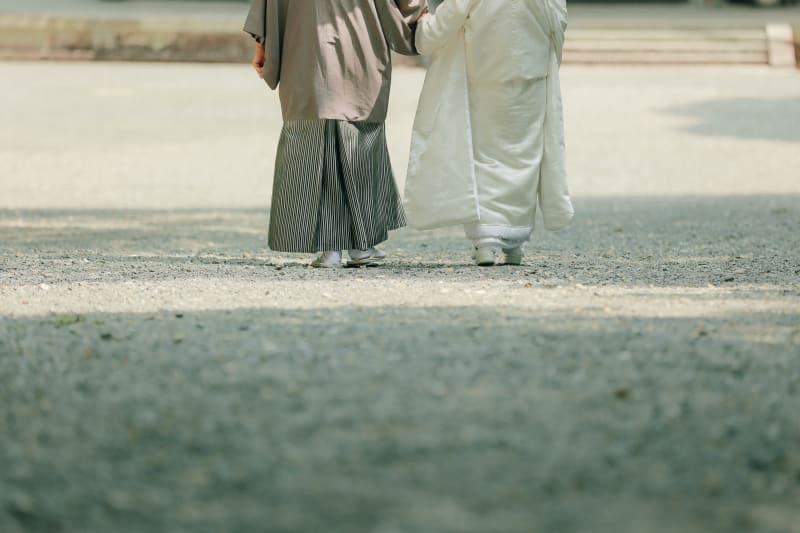 お二人が一歩ずつ歩みを進めるお足元の写真からは