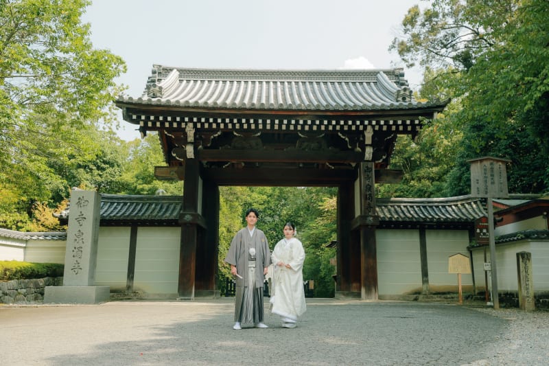 泉涌寺の力強い背景は、まるで新郎新婦様の背中をそっと押してくれるかのような存在感があります。