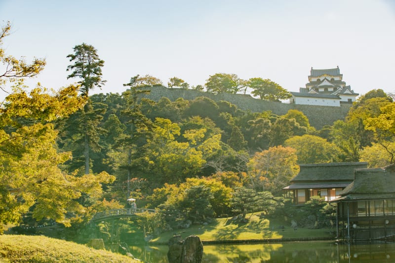 彦根城の北東にある大名庭園で、琵琶湖や中国の瀟湘(しょうしょう)八景にちなんで選ばれた
