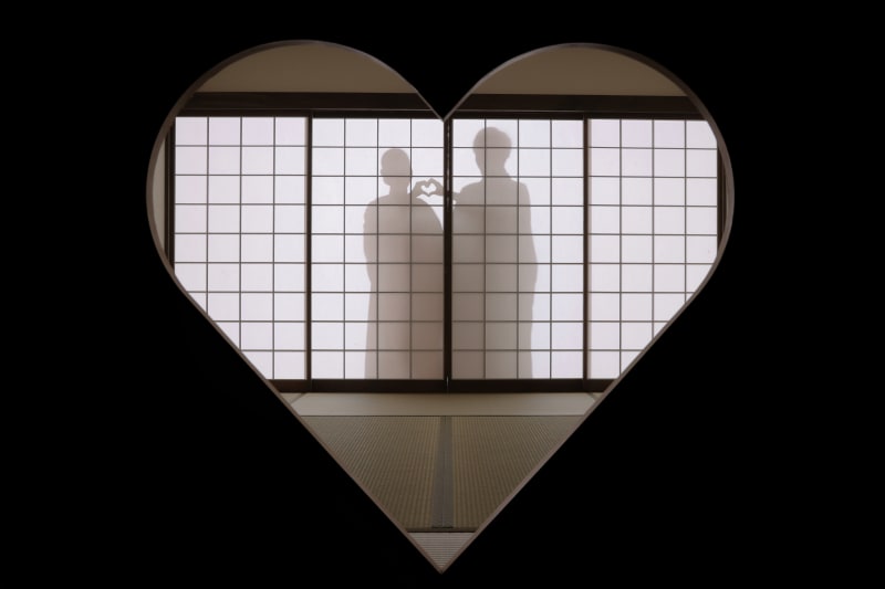 次に、屋内庭園ならではのハート形の窓を利用したカット。
