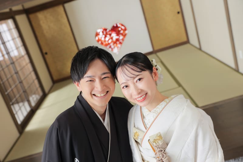 今回は、新郎新婦の白無垢と紋付が映える屋内庭園での撮影風景をご紹介します。