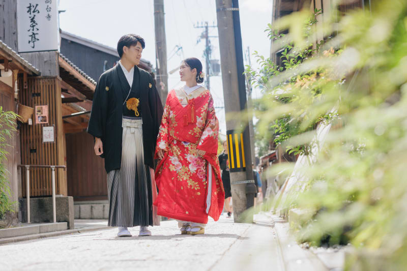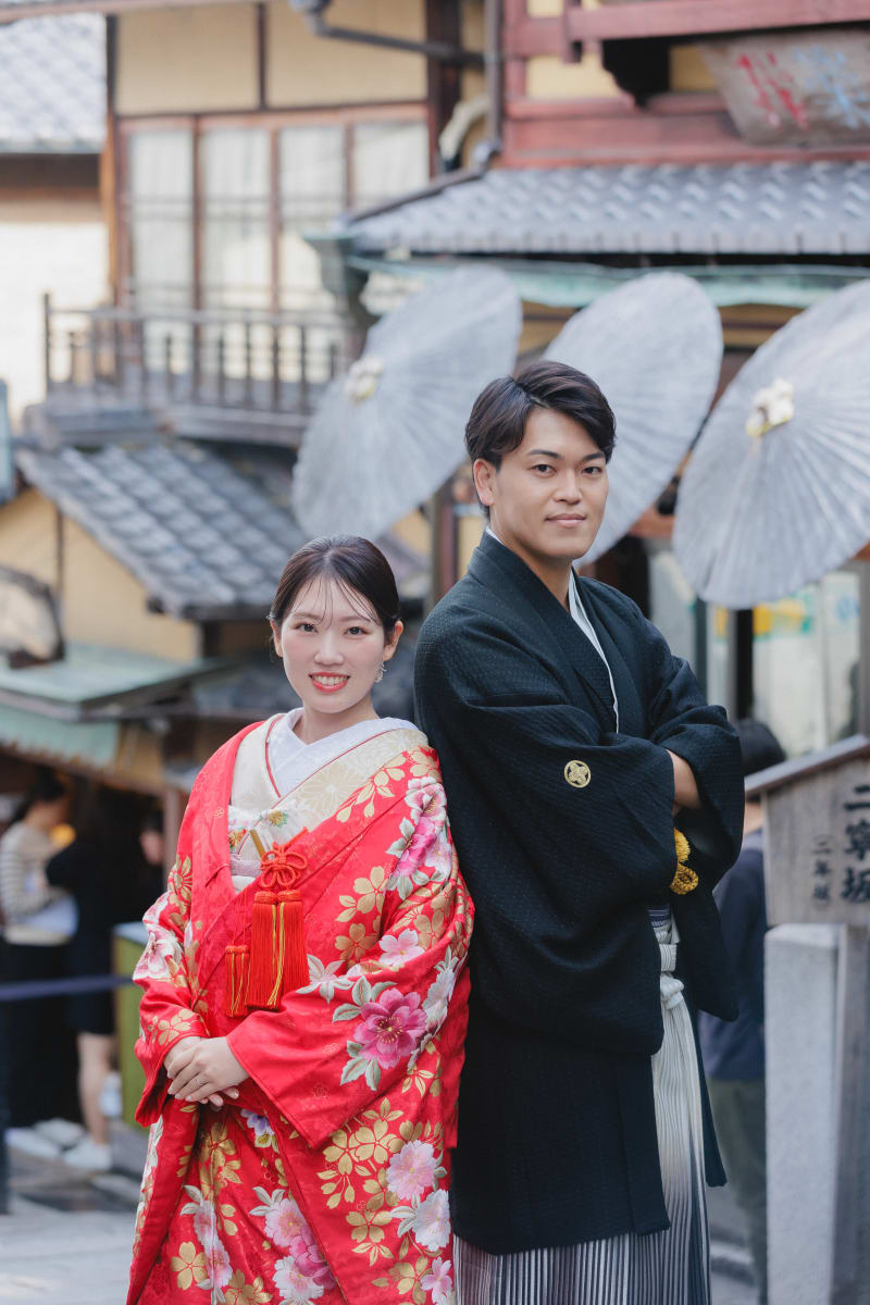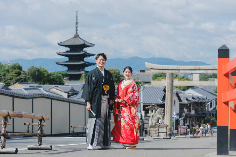 本日は、秋晴れの爽やかな空の下、八坂でロケーションフォトを撮影された素敵なお二人をご紹介いたします。