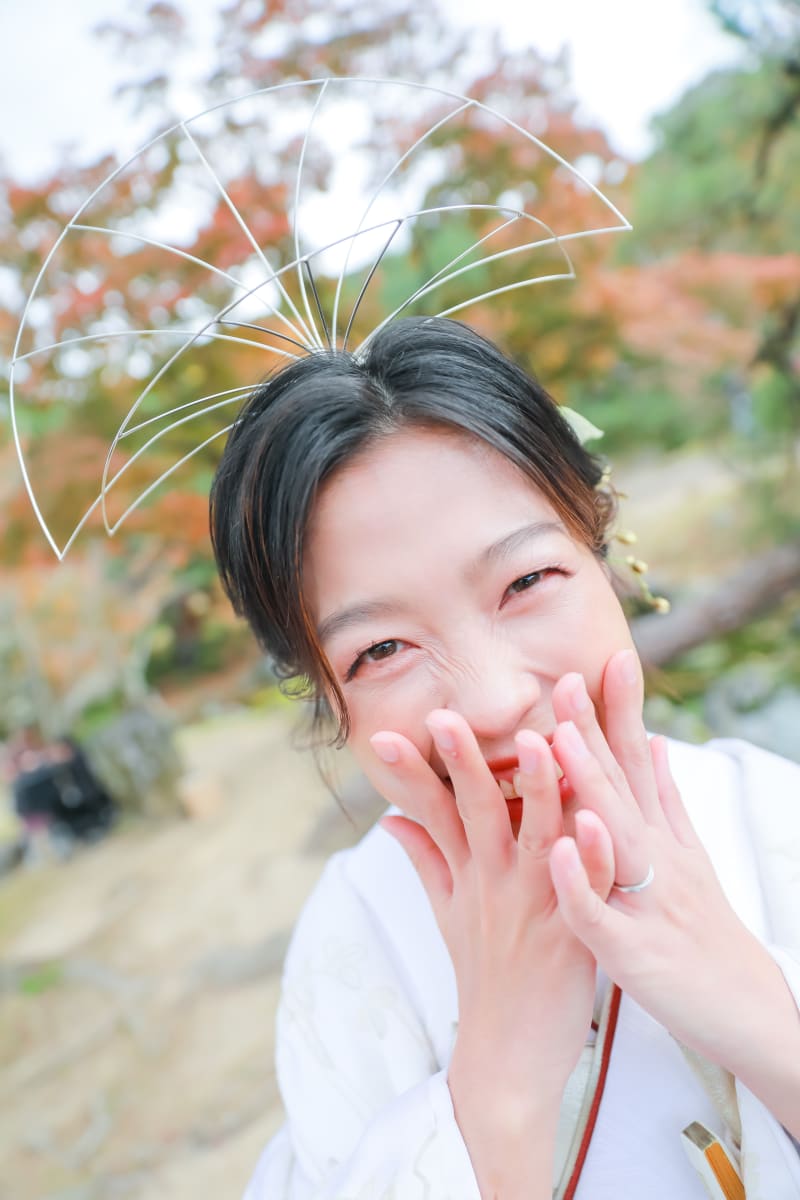 白無垢姿での綿帽子からのぞく幸せな笑顔が、とても印象的でした。