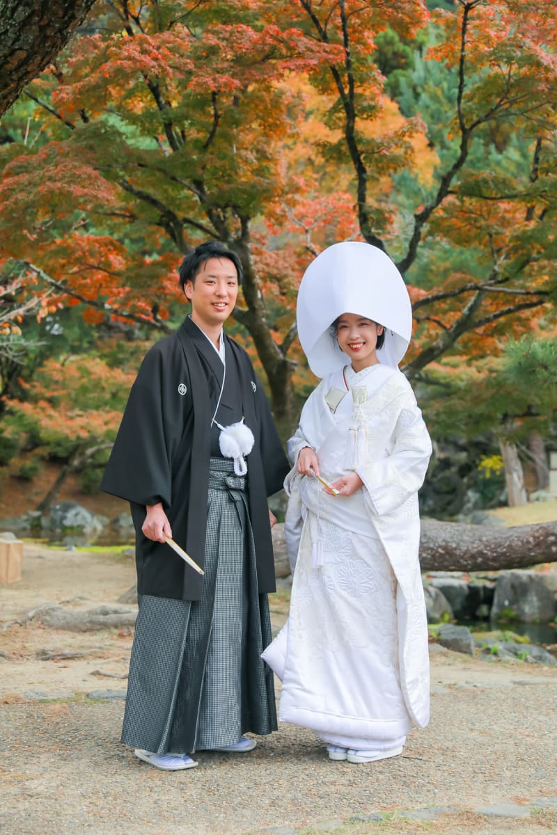 紅葉の色付きの美しい中、お二人の優しい表情が忘れられません。