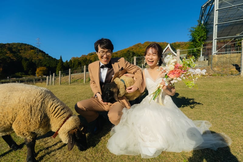 羊たちの愛らしい姿は、新郎新婦の幸せを祝福するかのようです。