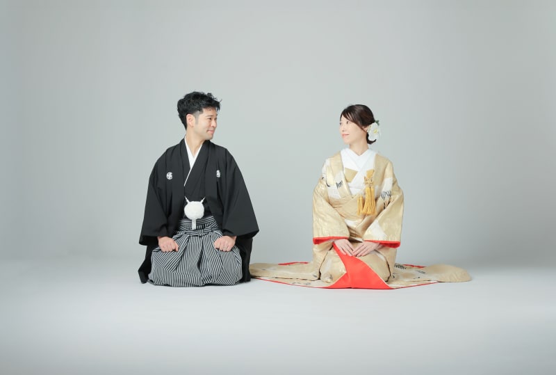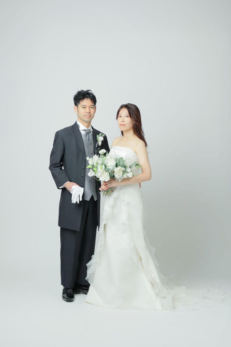 本日は洋装スタジオの中でもシンプルな真っ白の背景で撮影されたお二人をご紹介いたします