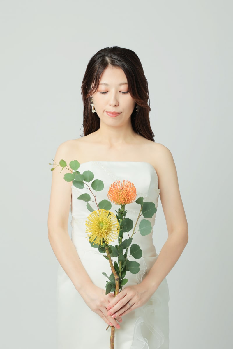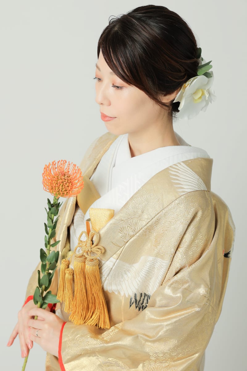 和装で持っていただく事でお花が和のお花だった事に気付かされます