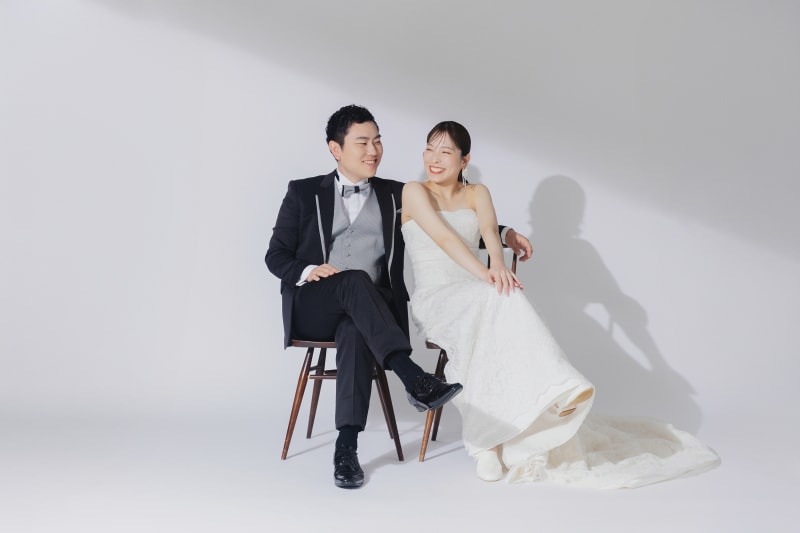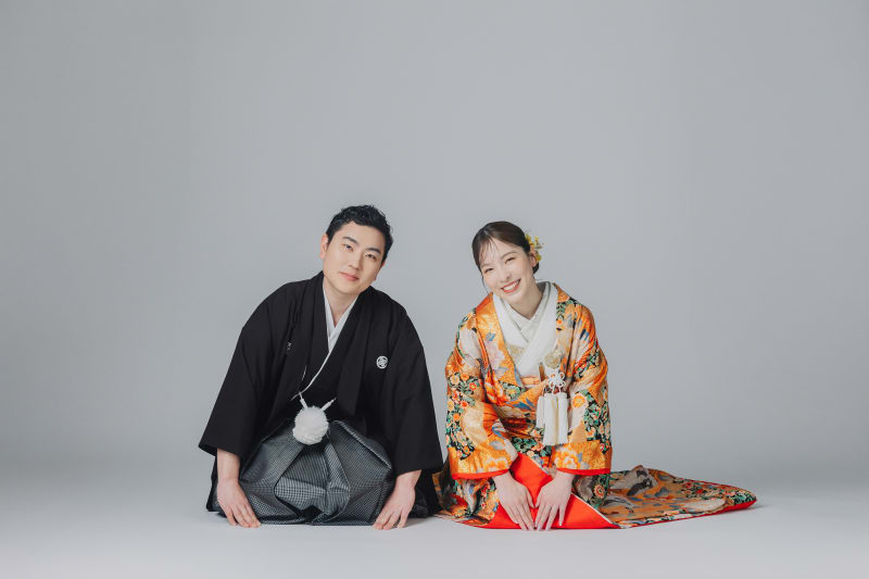 こちらの構図は当店にある屋内庭園でのイメージが強いかもしれませんが、じつは白の背景でも正座のポーズは可能です◎
