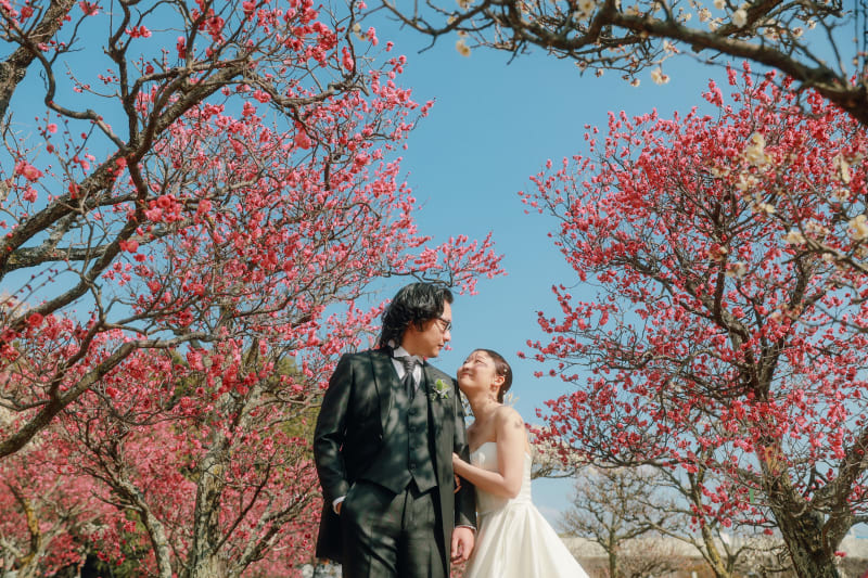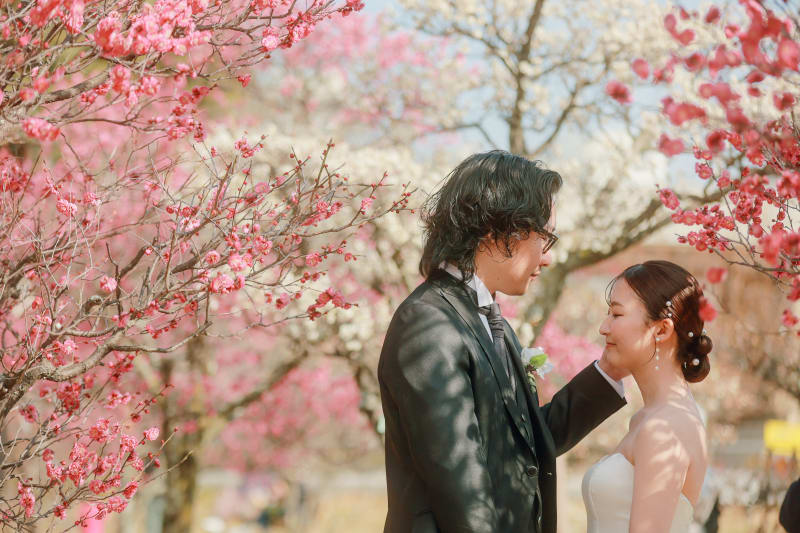 日は、満開に咲き誇る梅の花とともに撮影された素敵なお二人をご紹介いたします!
