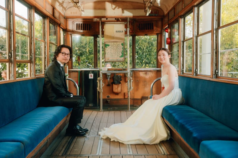 少し場所を移動すると、レトロな電車の中での撮影スポットがあります。