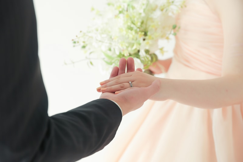 指輪が二人の愛情の証として、ここに一層の輝きを放っているのが感じ取れます。