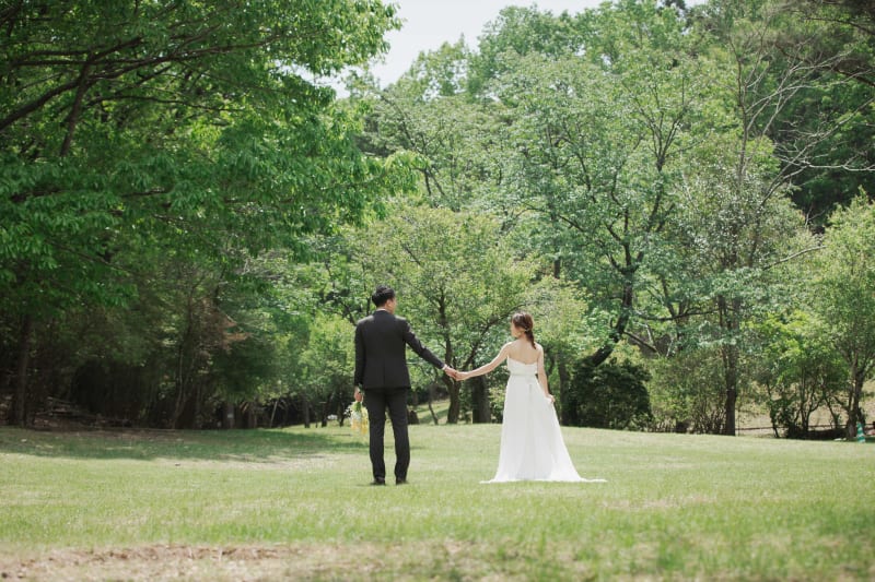 芝生も青々としており、白のドレスにもすごく映える可愛いロケ地です。