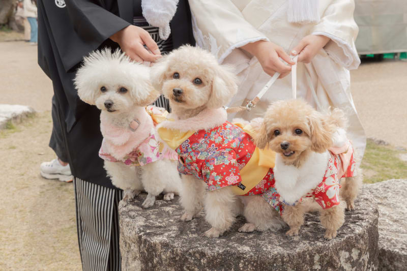 大切なわんちゃんたちと一緒に撮ることで、緊張を和らげることもできますし