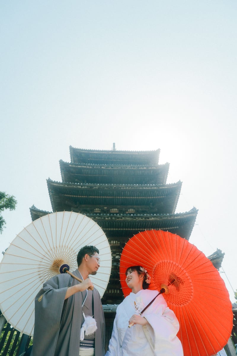 今回撮影させていただいたのは、五月晴れが広がる八坂方面に赴いたお二人です。