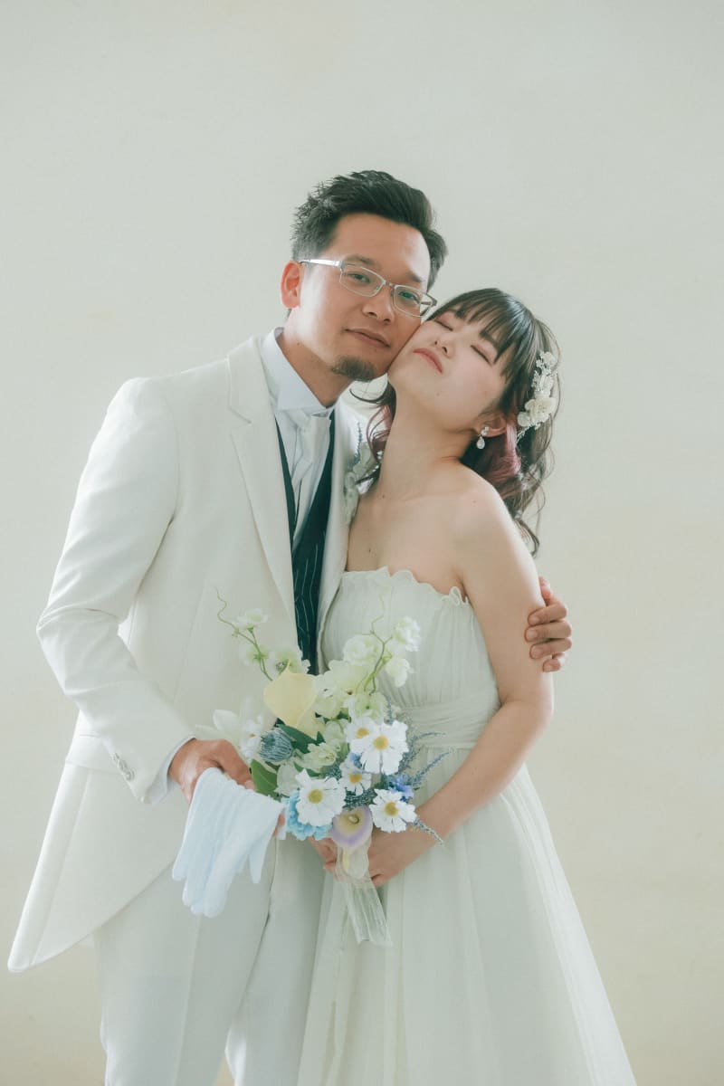 かわいらしいブルーの花束と新婦様のインナーが見事に引き立つアップショットは、見惚れてしまう美しさでした。