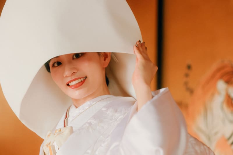 撮影時、少し雰囲気を変えて撮ってみたいというお客様には綿帽子も人気です!