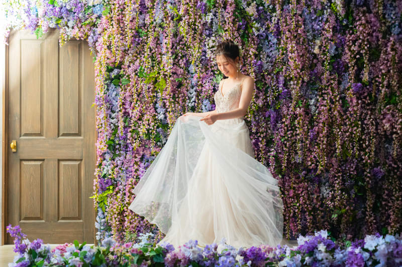 壁一面に花が広がり、洋装での撮影にぴったりです◎