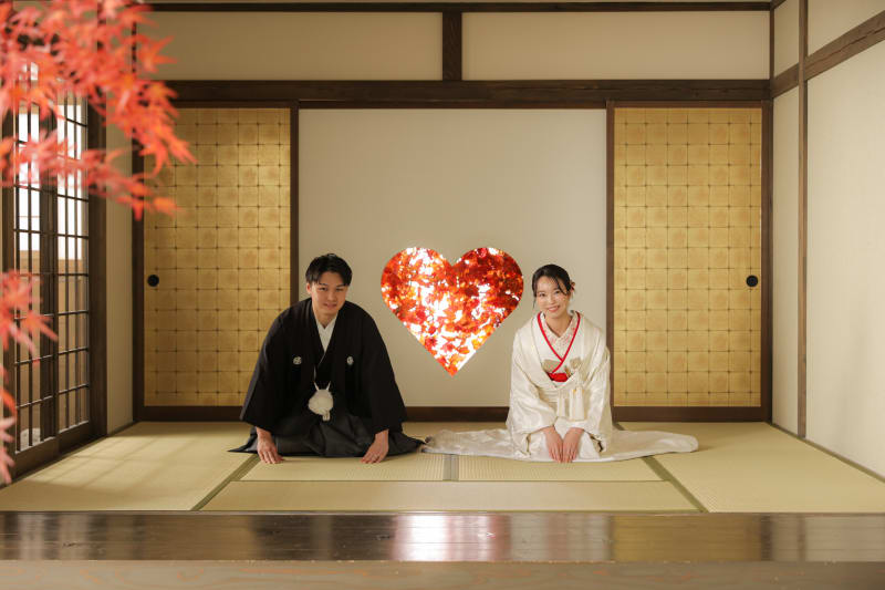 手前と奥のハートの紅葉が素敵なアクセントになっています