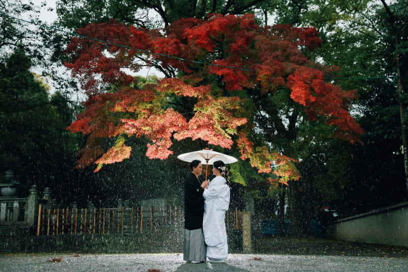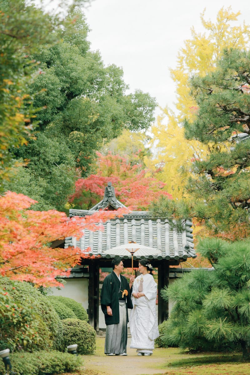 紅葉を背に随心院でのブライダルフォト