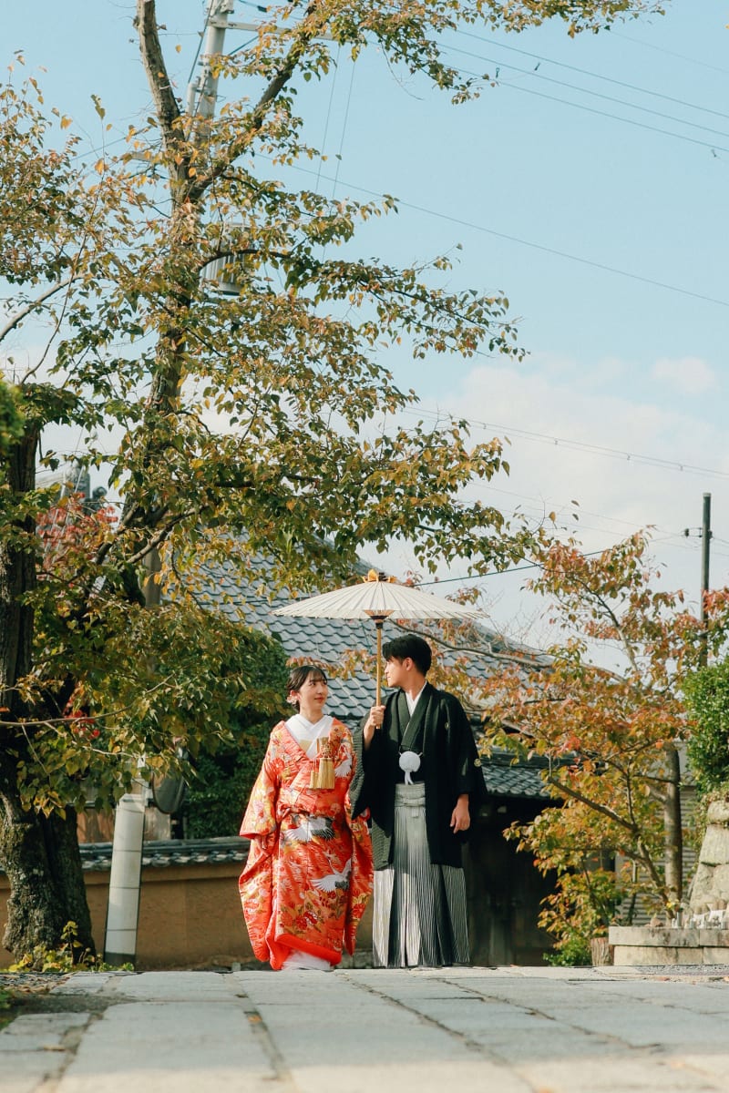京都の秋は本当に過ごしやすく、快適な天候の中で撮影をお楽しみいただけます。
