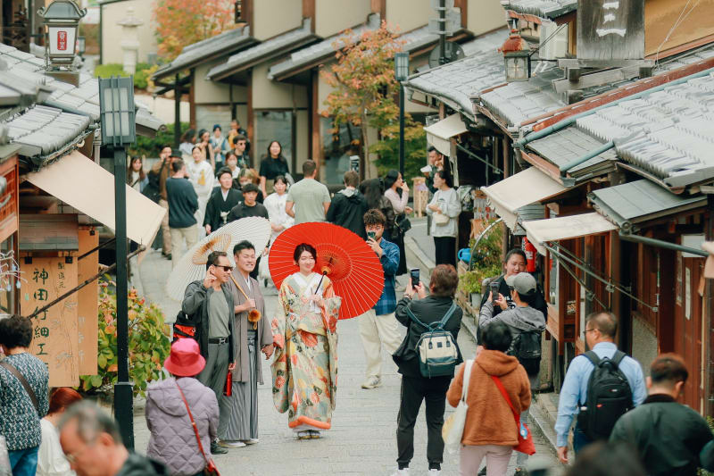 八坂は海外での認知度も高く、特に秋は観光客の方に写真撮影を頼まれる場合もあります。