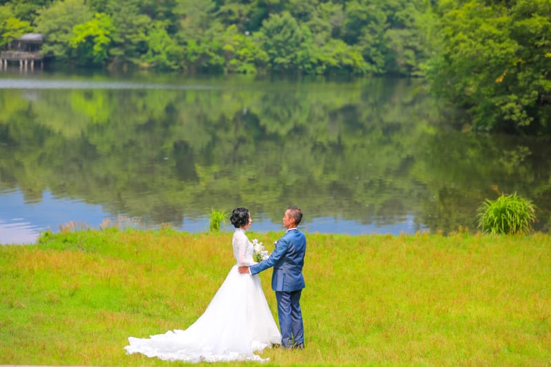 今日はスタジオ撮影の後、宝ヶ池でロケーション撮影を行った素敵なお二人をご紹介いたします♪