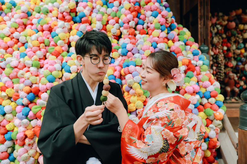 こちらでは、新郎新婦が楽しそうにおだんごを頬張る姿が印象的でした。
