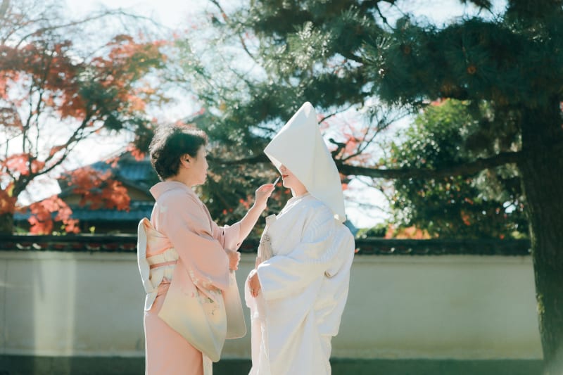 ここでは新婦様のお召し上げはお母様に手伝っていただくという、心温まる瞬間が。