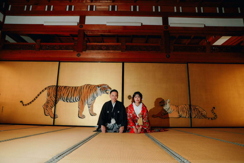 後ろから虎が見守っているようで、なんだか縁起の良さそうなお写真になりました♪